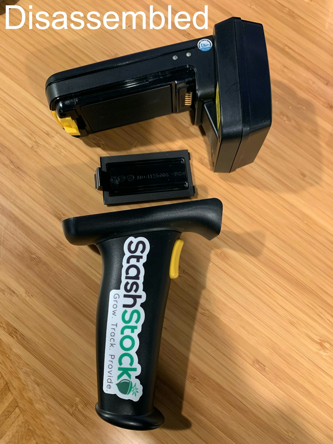 We ship the scanner without its battery installed. In order to install the battery, remove the handle and insert the battery into the compartment at the bottom of the RFID gun.