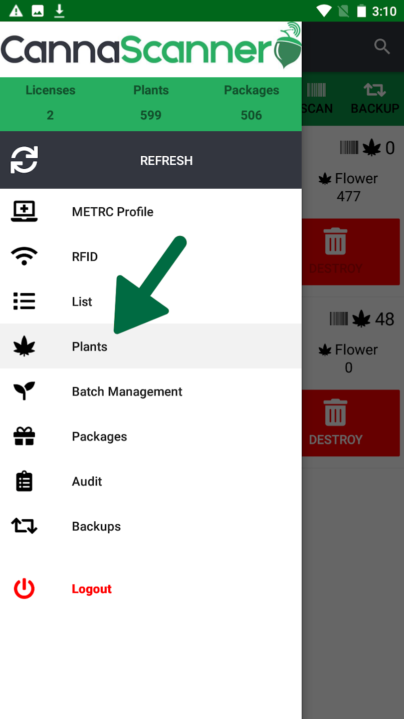 The PLANTS tab in the main menu of your CannaScanner allows you to manage your plant tags.
