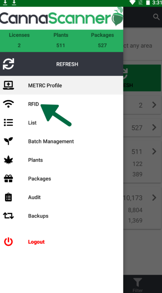 The RFID tab in the main menu of your CannaScanner allows you to: